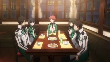 Tatsuya finishes his report about the incident. The group, consisting of Erika, Leo, Mizuki, Miyuki and Tatsuya go to a cafe, where they talk about Tatsuya's cast jamming.
