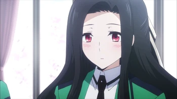 Now at the Student Council room, Mari embarrasses herself by defending her boyfriend. Tatsuya makes Mayumi blush, and Mari teases her about it. Miyuki gets angry and things get frozen. The siblings go home and Tatsuya shows Miyuki information about Blanche.