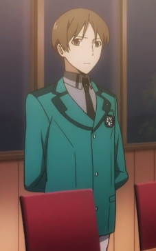 Hattori Gyoubushoujo Hanzou (服部 刑部少丞 範蔵) is a graduate of First High School. [1] He is a former Vice-President of the Student Council. Katsuto chose Hattori as his successor to become a next leader of the Club Management Group before handing it off to Igarashi Yousuke.