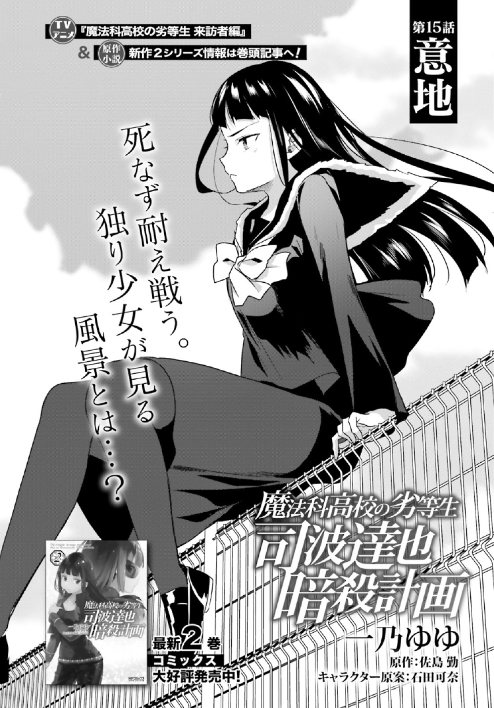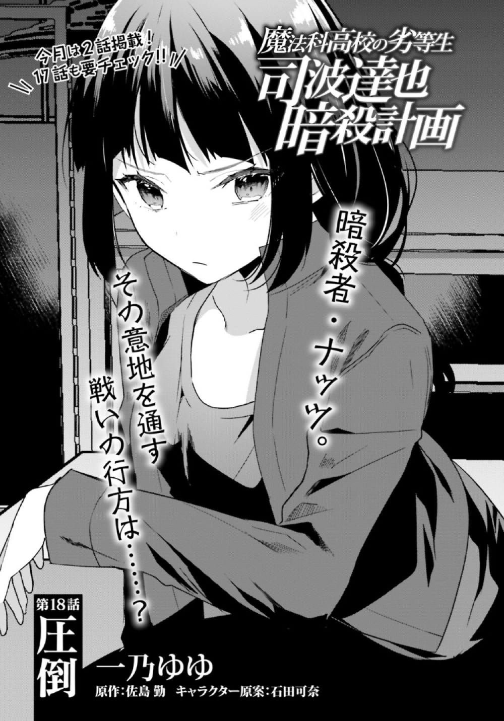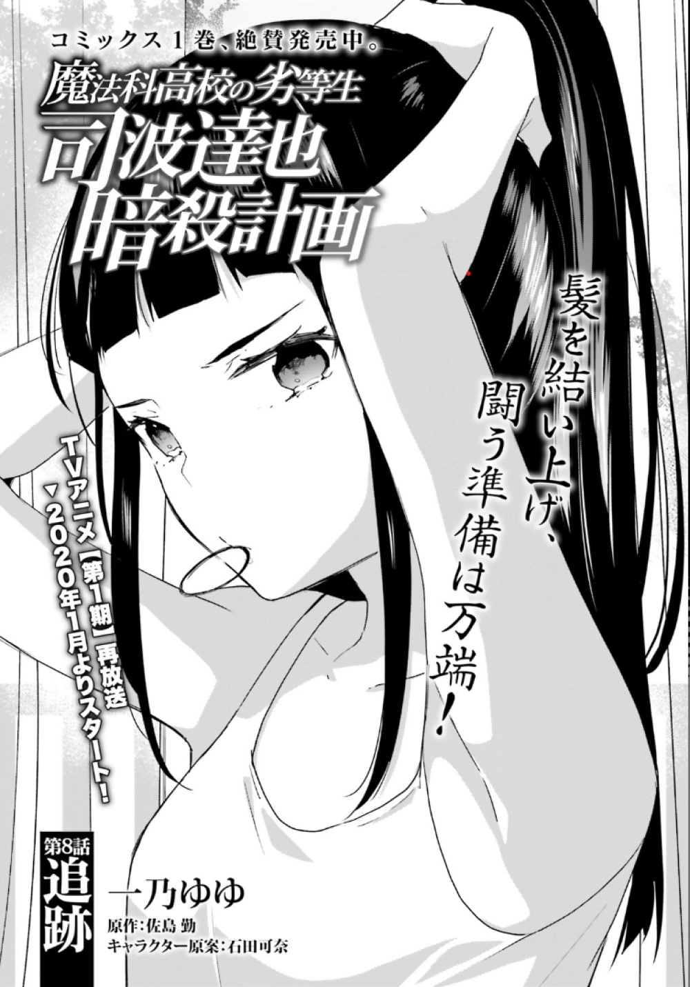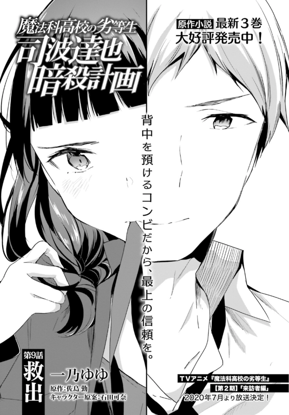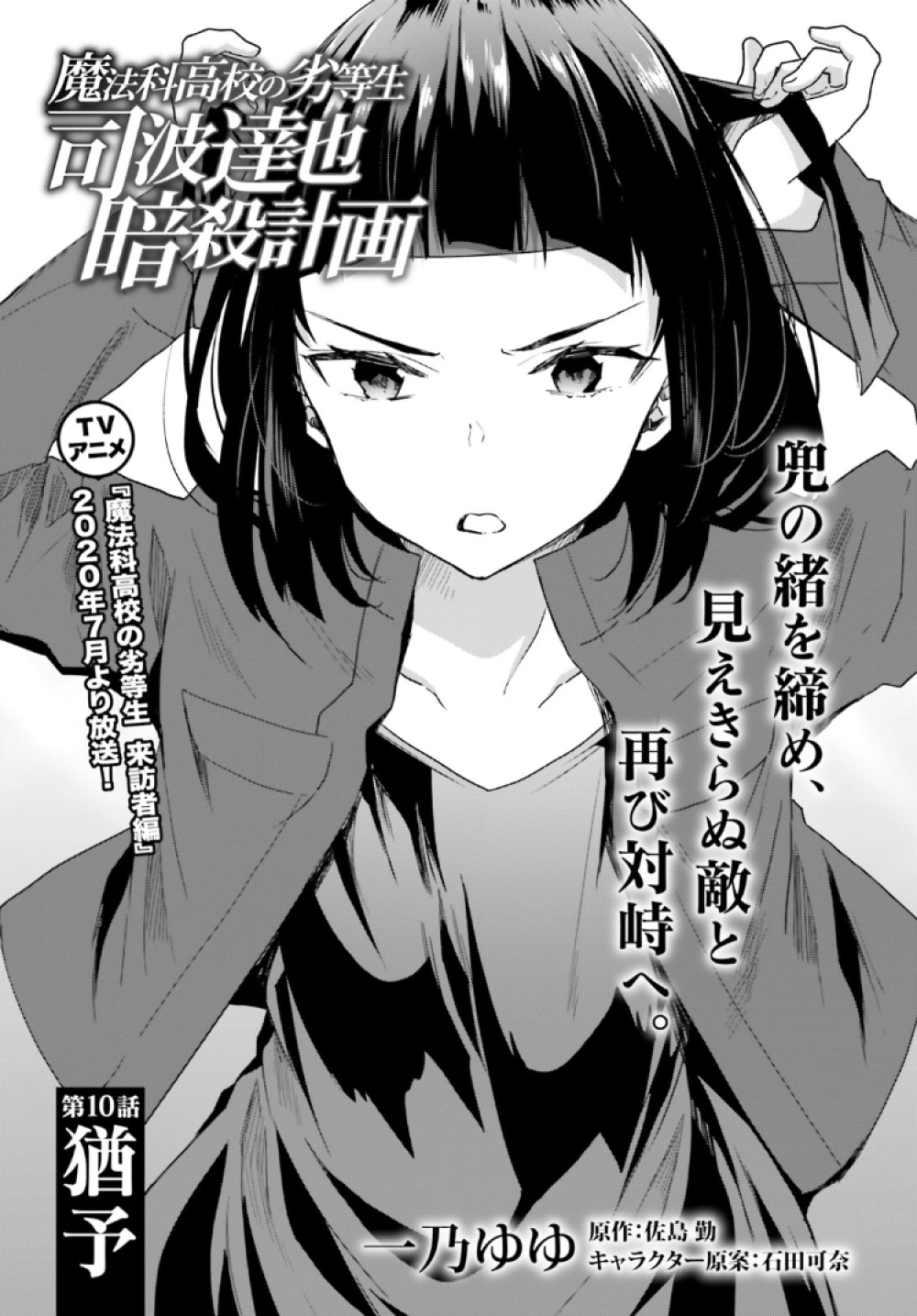 Shiba Tatsuya Ansatsu Keikaku (司波達也暗殺計画) is a manga based on the spin off series Plan to Assassinate Tatsuya Shiba which follows the story of Hashibami Yuki, a professional assassin. The adaptation is by Ichino Yuyu (一いち乃のゆゆ), character designs by Ishida Kana. It began publication on May 27th, 2019 and is serialized by Monthly Comic Alive.