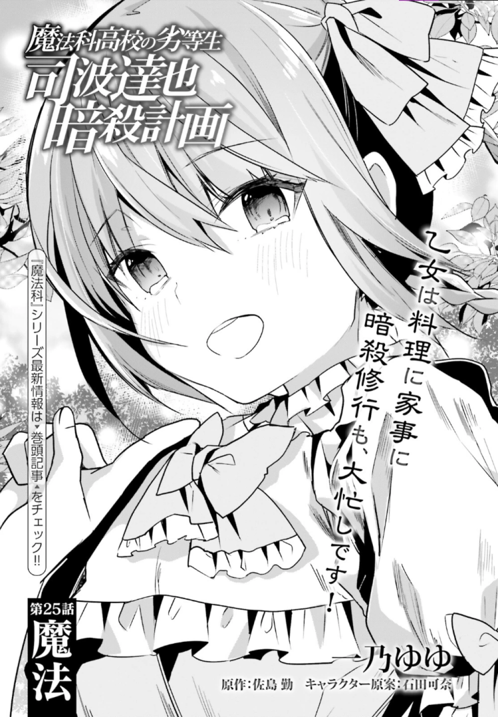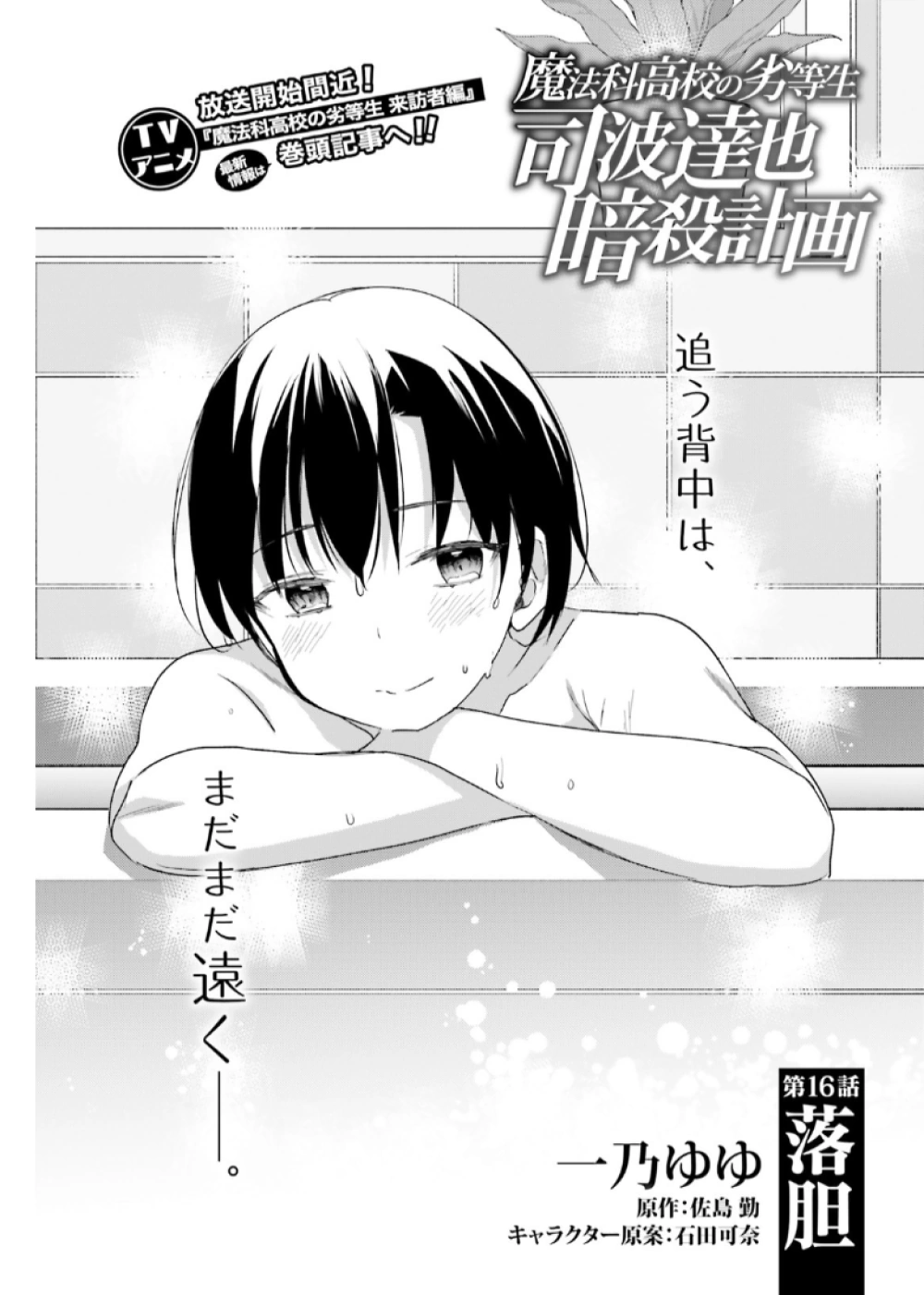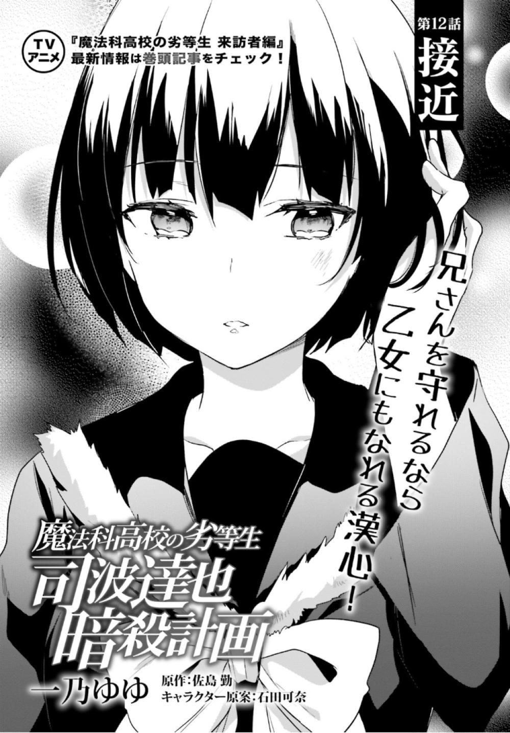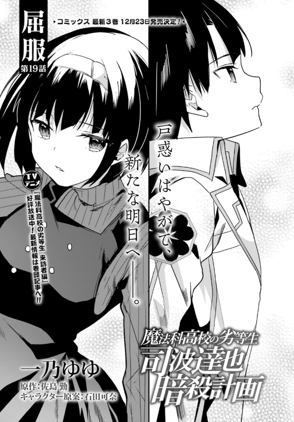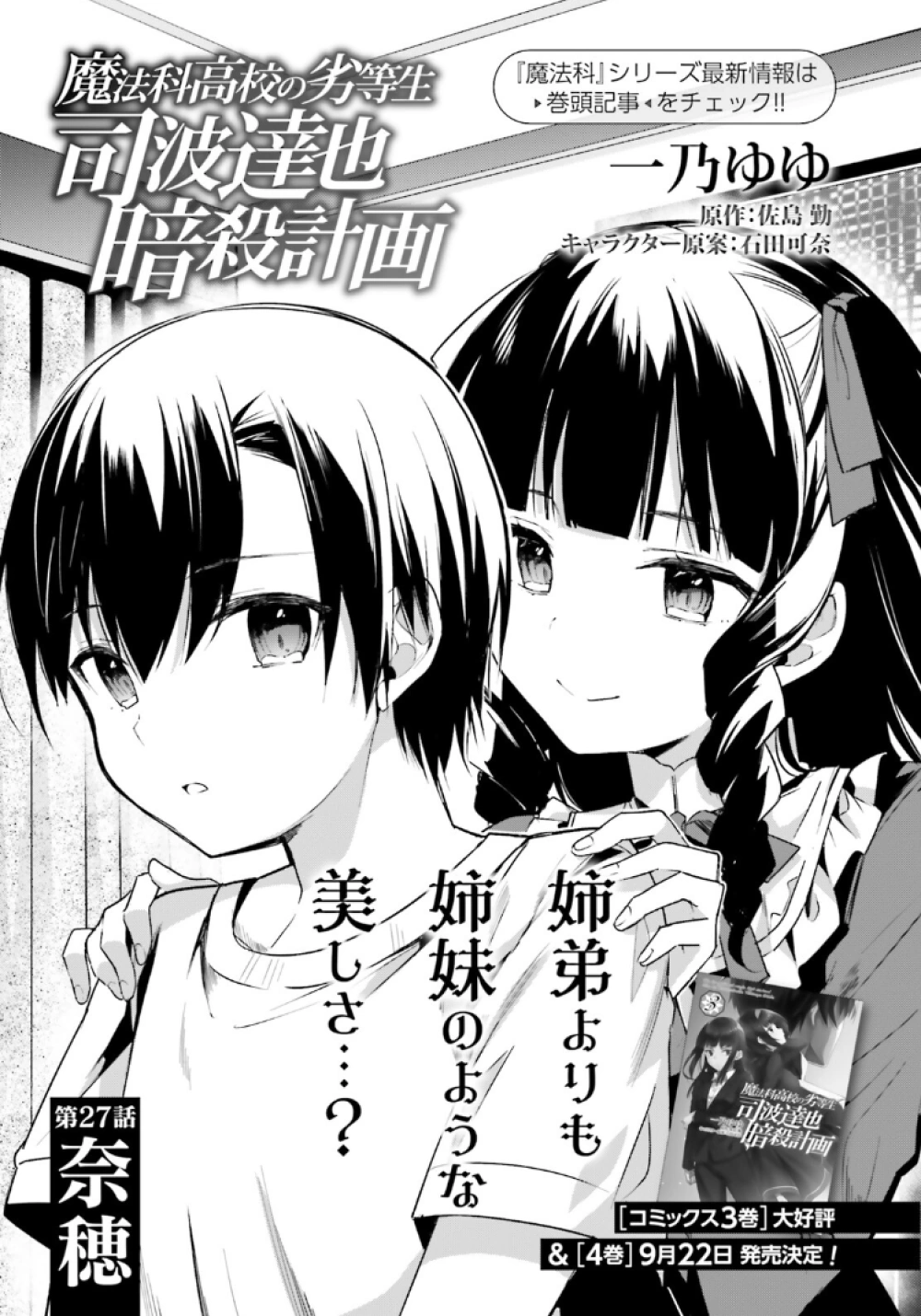 Shiba Tatsuya Ansatsu Keikaku (司波達也暗殺計画) is a manga based on the spin off series Plan to Assassinate Tatsuya Shiba which follows the story of Hashibami Yuki, a professional assassin. The adaptation is by Ichino Yuyu (一いち乃のゆゆ), character designs by Ishida Kana. It began publication on May 27th, 2019 and is serialized by Monthly Comic Alive.
