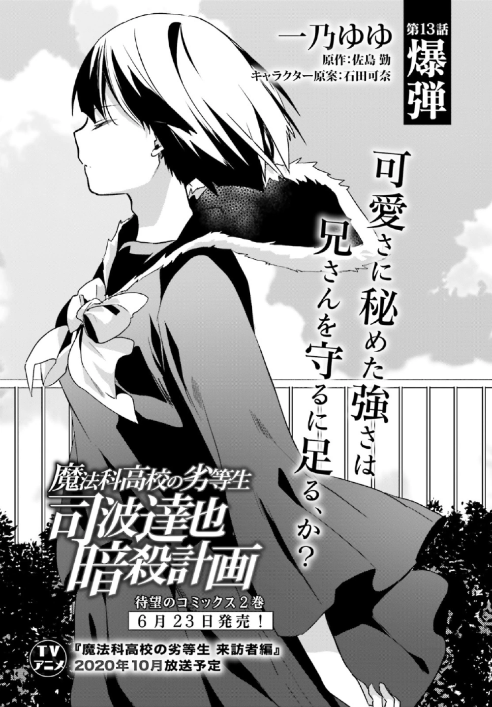 Elsewhere, the leader of the cult, Konishi Ran, reflects on the situation with Shiba Tatsuya and the experiment at First High and decides to act, using her cult members to dispense justice to eliminate the evil magician, Shiba Tatsuya.