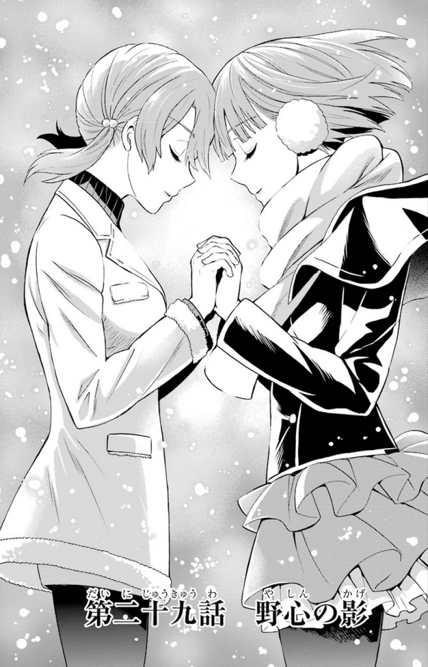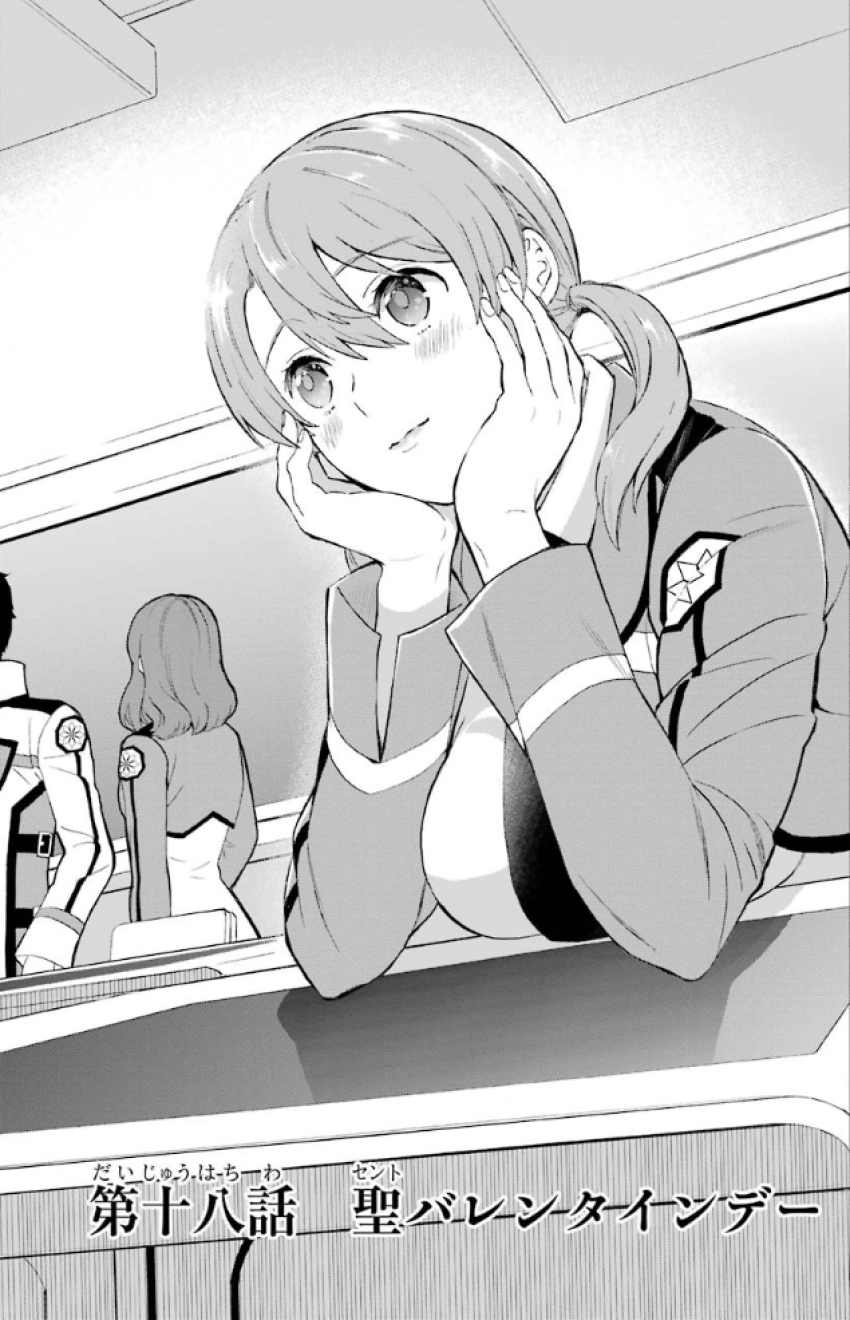 Tatsuya is unexpectedly approached Kobayakawa, the girl who fell at the Nine Schools Competition. She thanks Tatsuya for the advice to join the army as a support officer, something Mari was supposed to keep secret, allowing her to use her magical expertise despite losing the ability to use magic. She tells him it really helped her come to terms with what happened. Tatsuya gives her a salute and wishes her well in the future.