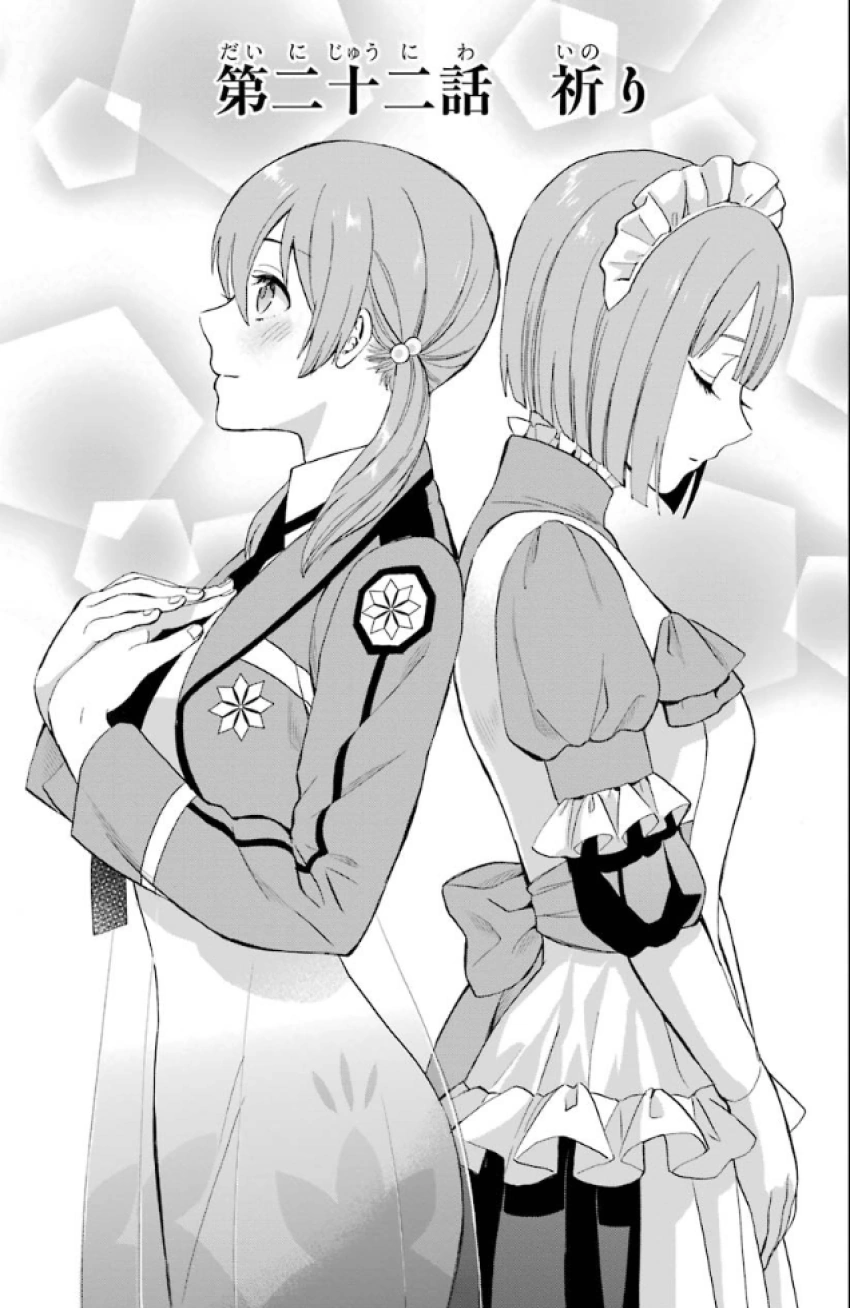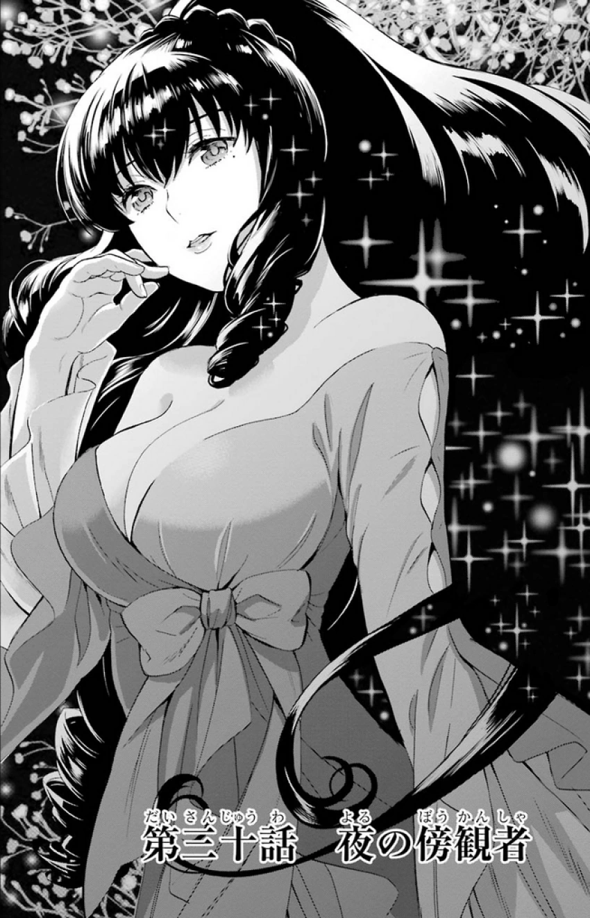 The news about the Vampire Murders is in the papers and it becomes a hot topic. Mayumi and Juumonji discuss the issue. The Saegusa know of 24 victims and Juumonji realises Magicians are being targeted. Juumonji suggests contacting the Yotsuba but Mayumi informs him her father broke the rules last month and the two houses are at odds. Mayumi requests an alliance and Juumonji accepts. At lunch Honoka comments that there have been vampire attacks in the USNA as well, but they've been covered up.