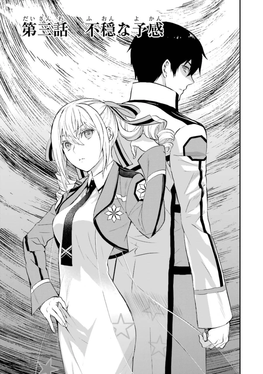 Tatsuya returns to school at the appointed time, not fully convinced he can trust Clarke. With him are Miyuki, Erika, Leo and Pixie. Mikihiko meanwhile, is guarding Mizuki and Honoka, who are providing support. The five then jump the fence into the training area.