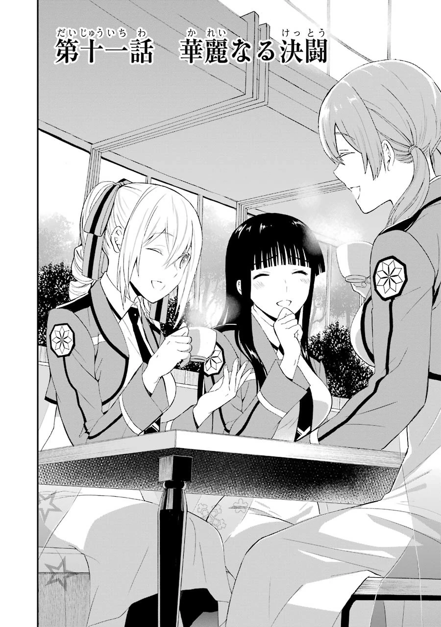 At home, Tatsuya requests that Miyuki call Yotsuba Maya to discuss the situation. He asks Maya about the Kudou family’s secret technique ‘Parade’ because his Elemental Sight was blocked. He also requests reinforcements. Maya gives him permission to contact the 101st Military Battalion.