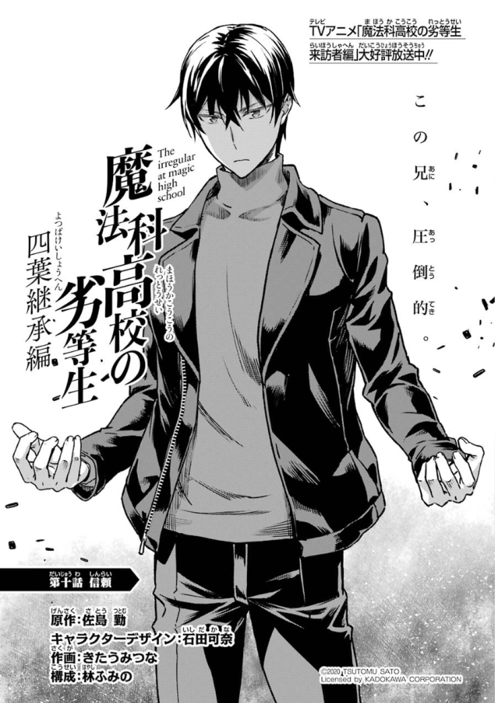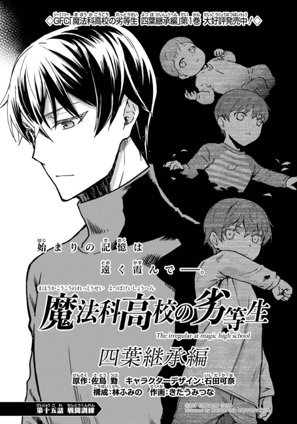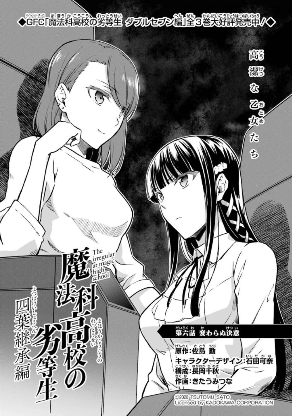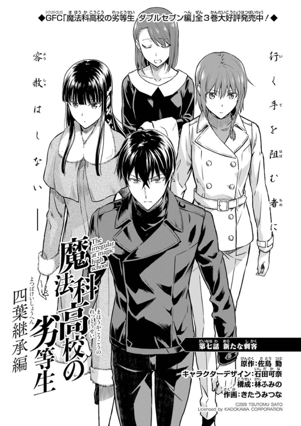 Mahouka Koukou no Rettousei Yotsuba Keishou-hen (魔法科高校の劣等生 四葉継承編) is the manga adaption of the of the Yotsuba Succession Arc' from the 16th light novel. The adaptation is by Kitaumi Tsuna (きたうみつな). It began serialising in GFantasy Magazine in December, 2019, running for twenty-six chapters until it completed in March, 2022.
