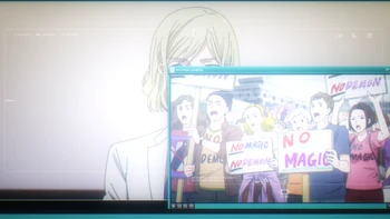 The feed is suddenly hacked by Raymond Clark. Tatsuya is unphased and reassures Miyuki that the room contains no cameras or microphones so he cannot see them. Raymond introduces himself as one of the Seven Sages and that he knows of Tatsuya through Shizuku. He tells the Shiba siblings that he was the one who informed Angie Sirius about the parasites, though she already knew. He then goes on to tell them that the anti-magician movement in the USNA is being spearheaded by Gu Jie, another sage and the mastermind running Blanche and a senior member of the No Head Dragon syndicate. Raymond states the sages are independent, so they don’t work together, they just all have access to Hlidksjalf, a backdoor hacking system of the USNA’s Echelon III global monitoring system. Raymond also mentions that the search history of the other users is how he became aware of Gu Jie. Raymond then explains with the loss of both Blanche and the No Head Dragon Japanese branches, Gu Jie lost all his influence in Japan so has set up the parasites to create a distraction to build another spy base in Japan. Raymond then states that he believes Gu Jie’s intent to get rid of magic so the GAU can become more dominant militaristically.
