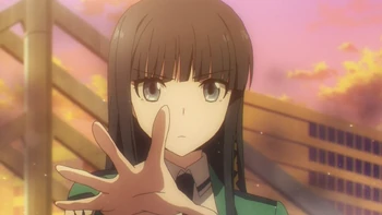 4:05pm. On the surface, Kyouko and her team, along with the remaining students Tatsuya left behind with her and a number of civilian evacuees approach the station plaza but are attacked by two mechanised tanks. Before they can open fire, Miyuki and Mayumi use magic to neutralise them, leaving Kyouko stunned.